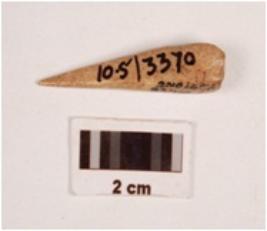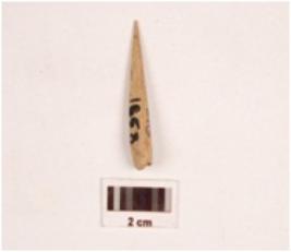 | Description / विवरण | Fragment of a bone point, slightly broken at one end, very finely polished both sides, smooth surface. |