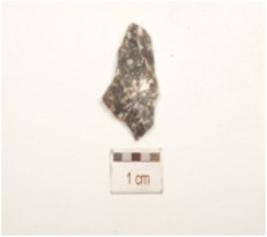 | Description / विवरण | A chalcedony utilized flake with on blade scars on surface, trapezoidal cross section and use wear marks on edge. |