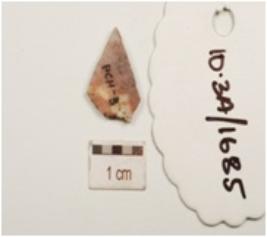 | Description / विवरण | A chert flake with flattened cross section and smooth surface. |