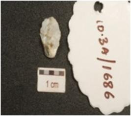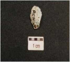| Description / विवरण | A chert utilized flake with flake scars on surface and use wear marks on edge. |