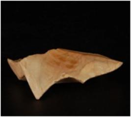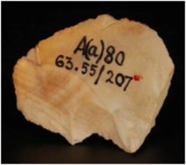 | Description / विवरण | Chert flake with flake scars on surface and sharp edges. |