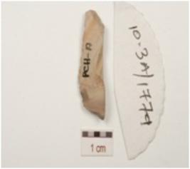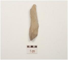 | Description / विवरण | A flake made of chert, use wear marks on left lateral sides, diffused bulb on ventral and flake scars on dorsal. |