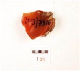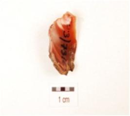 | Description / विवरण | A blade, made on carnelian with improminent mid ridge on dorsal side, ripple marks on dorsal, use wear marks on cutting edge and dark red in colour. |