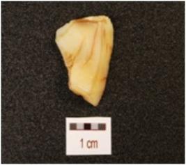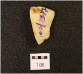 | Description / विवरण | A blade, made on chert with prominent mid ridge on dorsal side, triangular in section and use wear makrs on cutting edge. |
