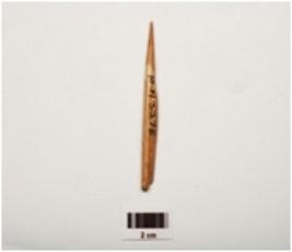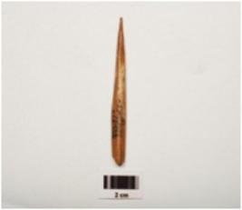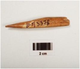 | Description / विवरण | Point made on bone with polished surface, triangular in section, pointed towards one end, broad and slightly broken at other end. |