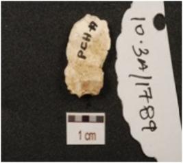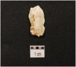 | Description / विवरण | A chert flake, diffused bulb on ventral, double ridge on dorsal and use wear marks along the edges. |