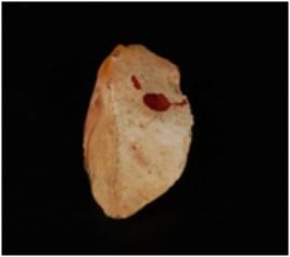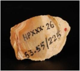 | Description / विवरण | A chert flake with two sharp edges and cortex on dorsal side. |