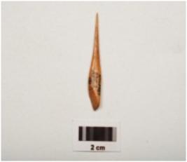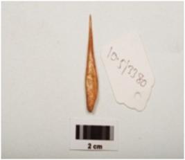 | Description / विवरण | Awl made on bone with polished surface, rectangular in section, pointed towards one end, broad other end, vertical groove on one surface. |