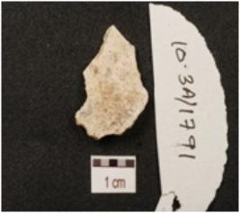 | Description / विवरण | A chert flake, bulb on ventral side, ridge on a dorsal side and use wear mark along with the edges. |