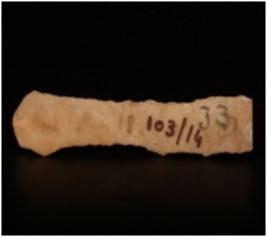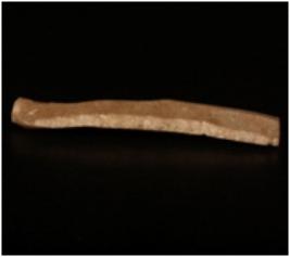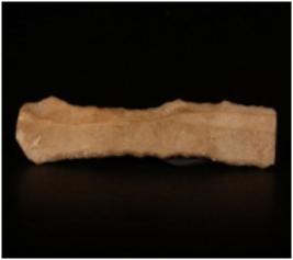 | Description / विवरण | Chert blade with one ridge on the dorsal side, trapezoidal in section, prominent bulb on the ventral side and use wear marks along the cutting edges. |