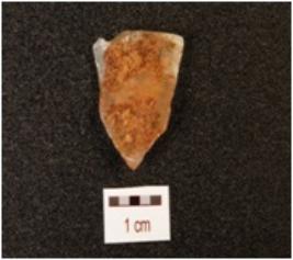 | Description / विवरण | A flake, made on chalcedony with end struck flake, prepared platform, bulb on ventral and use wear marks on edge. |
