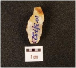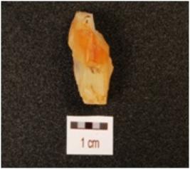 | Description / विवरण | A blade, made on chalcedony with double ridge on dorsal side, use wear marks on cutting edge and trapezoid in section. |
