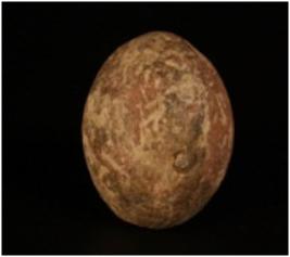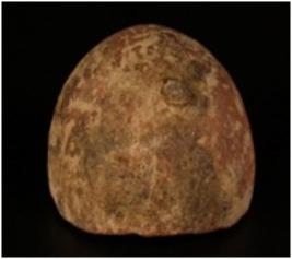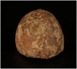| Description / विवरण | Half broken handmade terracotta ball with rough surface, semi circular in shape, well baked and traces of red slip on surface. |