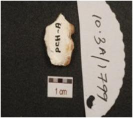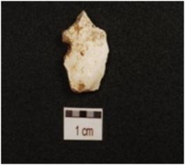 | Description / विवरण | A flake made of chert, bulb on ventral side, flake scars on dorsal side and use wear marks along with the edges. |