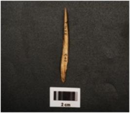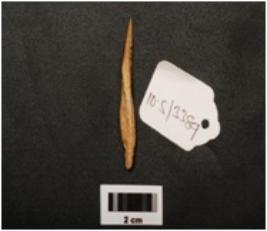 | Description / विवरण | Point made on bone with polished surface, pointed towards one end, broken other end and both lateral sides, |