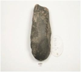 | Description / विवरण | Celt made on basalt, biconvex cross section, flake scars on surface and polished surface. |