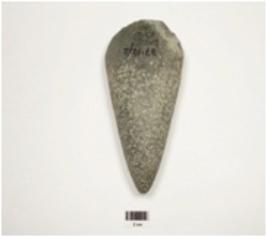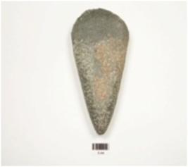 | Description / विवरण | Basalt axe, biconvex cross section, narrow butt end oval broad working end and polished surface. |