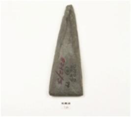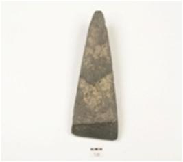| Description / विवरण | Adze made on basalt, triangular cross section, narrow butt end and sharp straight working end, cutting sides and polished surface. |