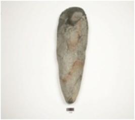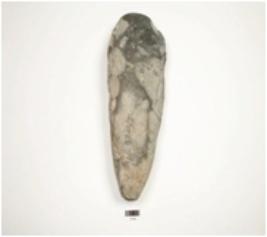 | Description / विवरण | Celt made on basalt, narrow butt end broad working end, flake scar on surface, polished surface and biconvex cross section. |