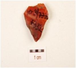 | Description / विवरण | A blade, made on carnelian with prominent mid ridge on dorsal side, use wear marks on cutting edge, triangular in section and treated with dark red in colour. |