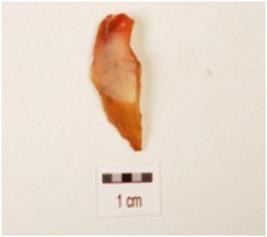 | Description / विवरण | A blade, made on carnelian with prominent mid ridge on dorsal side, triangular in section, use wear marks on cutting edge and orange in colour. |