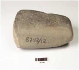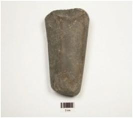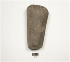 | Description / विवरण | Fragment of basalt celt, narrow butt end, polished surface and biconvex cross section. |