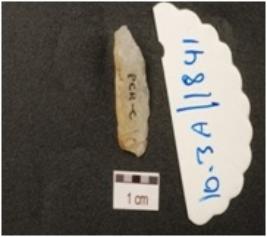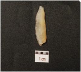 | Description / विवरण | An end struck flake made of quartz, prepared platform on proximal end and triangular cross section. |