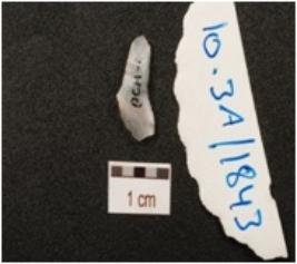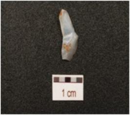 | Description / विवरण | An end struck flake made of quartz, prepared platform on proximal end and flake scars on one side. |