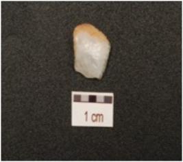 | Description / विवरण | An end struck flake made of quartz, flake scars on one side and prepared platform on proximal end. |