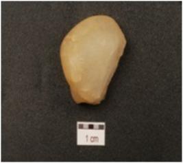 | Description / विवरण | A pebble made of quartz and flake scars on one side. |
