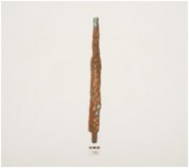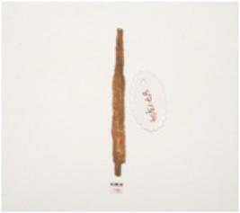 | Description / विवरण | Fragment of a copper spear head, broken in two pieces, sharp and broken edges. |