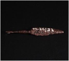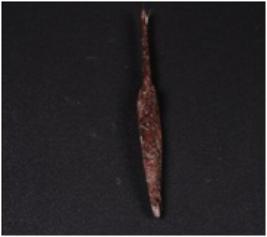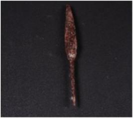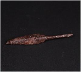 | Description / विवरण | A iron arrow- head, working tip is slightly broken, sharp edges, chemically treated. |