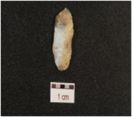 | Description / विवरण | A blade made of chalcedony, diffused bulb on the ventral, mid ridge on the dorsal and sharp working edges. |