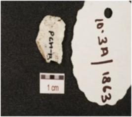 | Description / विवरण | A fragment of blade made of chalcedony mid ridge on the dorsal and use wear marks along cutting edges. |
