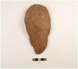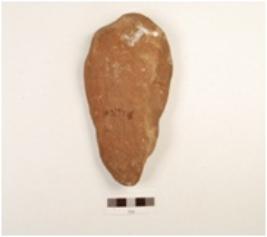 | Description / विवरण | Handaxe made on pebble quartzite, flake scars on both side, blunt cutting edge, butt and contex and plano-convex section. |