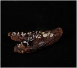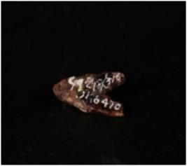 | Description / विवरण | Fragment of piece of copper arrow head. Edges are broken. |