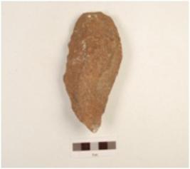 | Description / विवरण | A handaxe made on quartzite, flake scars on both side, wavy cutting edge, triangular section and contex surface. |