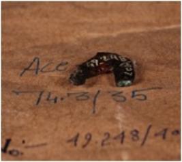 | Description / विवरण | Fragment of copper arrow head and tip is broken. |