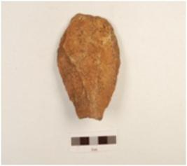| Description / विवरण | Handaxe made on quartzite, flake scars on both side, blunt cutting edges, plano-convex section and ventral side bulb diffused. |