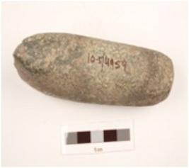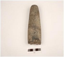 | Description / विवरण | Basalt celt, working edge broken, narrow butt, polished surface. |