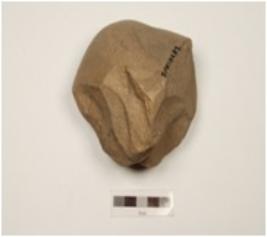 | Description / विवरण | A chopping tool made of sandstone, cortex on the surface. |
