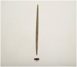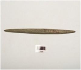 | Description / विवरण | A stone knitter pointed from both ends with polished surface and oval in section. |