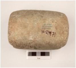 | Description / विवरण | Basalt pestle, hexagonal cross section, flat surface on one section end, pecking marks on another end, smooth surface. |