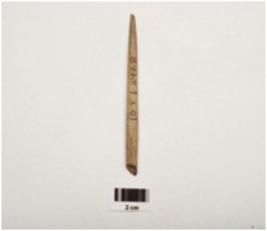 | Description / विवरण | A stone point polished surface with a pointed end partly broken from other end and square in section. |