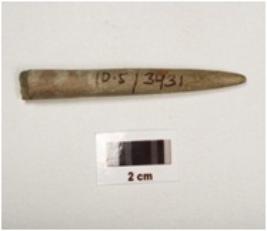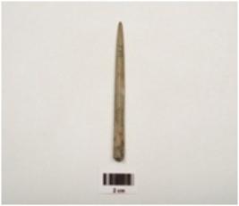 | Description / विवरण | A Stone point smooth surface with a pointed end partly broken from other end and circular in section. |