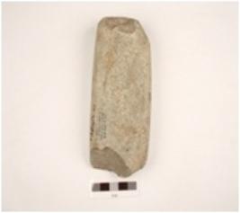 | Description / विवरण | Dolerite axe, working edge broken, butt damaged, rectangular cross section, both surface flat, polished surface. |