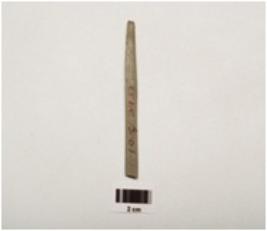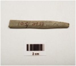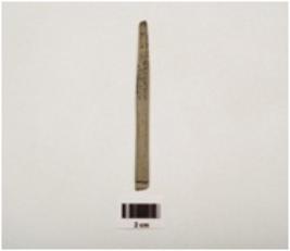 | Description / विवरण | A stone point polished surface with a thick pointed end, partly broken from other end and rectangular in section. |