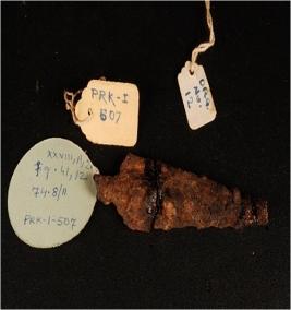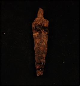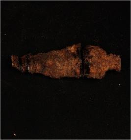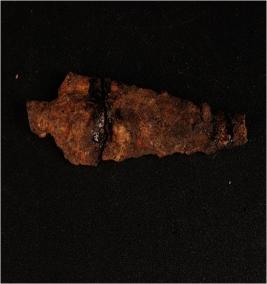 | Description / विवरण | Fragment of an iron arrow head broken into two pieces, rusted and pointed tip. |