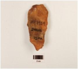 | Description / विवरण | A chert mini hand axe made on end struck flake, prepared platform, diffused bulb at ventral side, single ridged with flake scars on the surface. |