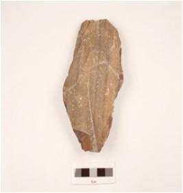 | Description / विवरण | A hand axe made on quartzite, end struck flake, prepared platform on proximal end and another end is sharp. |